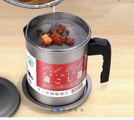 Frying Oil and Grease Container With Strainer, 1.4 Liter Stainless Steel Oil Storage Container with Lid Easy Grip Handle Suitable For Storing Frying Oil And Cooking Grease , Silver
