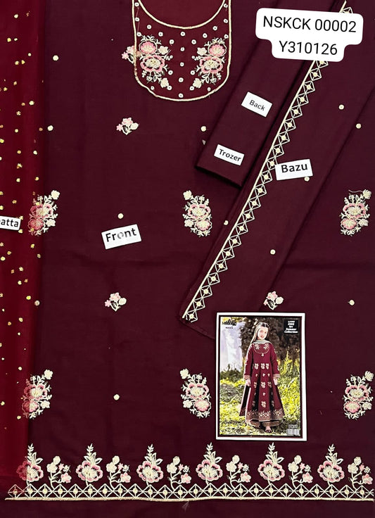 Step into the festive season with our Festive Wear Women Unstitched Collection, designed to bring grace, color, and sophistication to every celebration. Crafted from premium-quality fabrics and adorned with elegant prints, embroidery, and rich textures, these unstitched suits let you tailor the perfect fit while expressing your personal style. Ideal for weddings, Eid, parties, and festive gatherings, this collection blends traditional charm with modern elegance for a truly stunning look.Designed with premium-quality fabrics, intricate embroidery, and festive colors, these unstitched suits allow you to tailor the perfect fit while embracing timeless elegance. Ideal for Eid celebrations, parties, and special gatherings, this collection blends traditional craftsmanship with modern fashion to help you shine on every festive occasion.