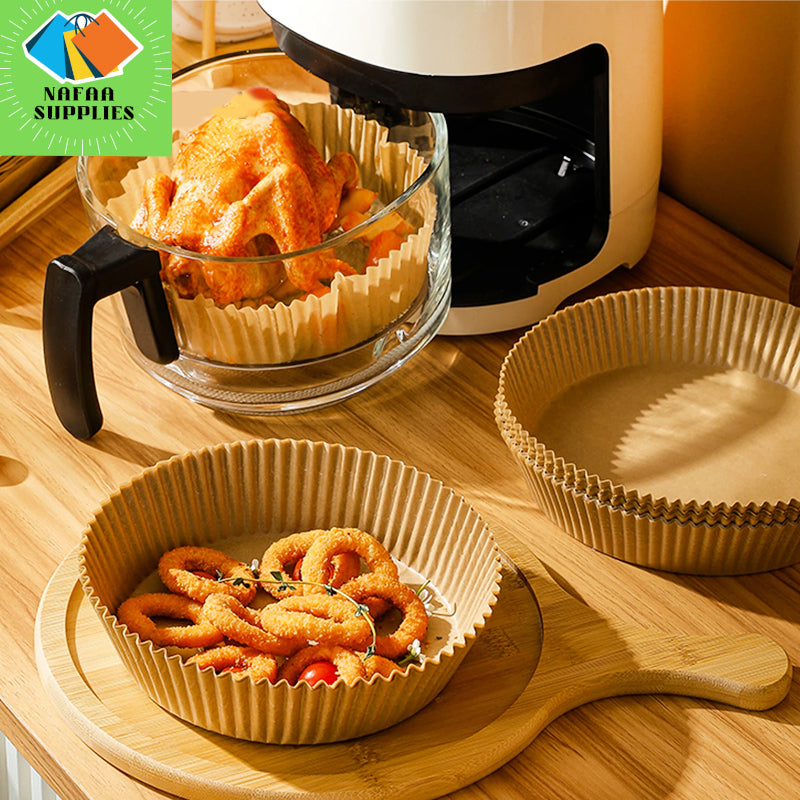 Healthy & Reliable Materials: Nafaa Supplies air fryer parchment liners are made of raw wood and food grade silicone oil coating, unbleached, no fluorescent agent, BPA-free, PFAs-free, making your baking safe, non-toxic .High-quality materials baking paper is made of 100% food-safe pulp,