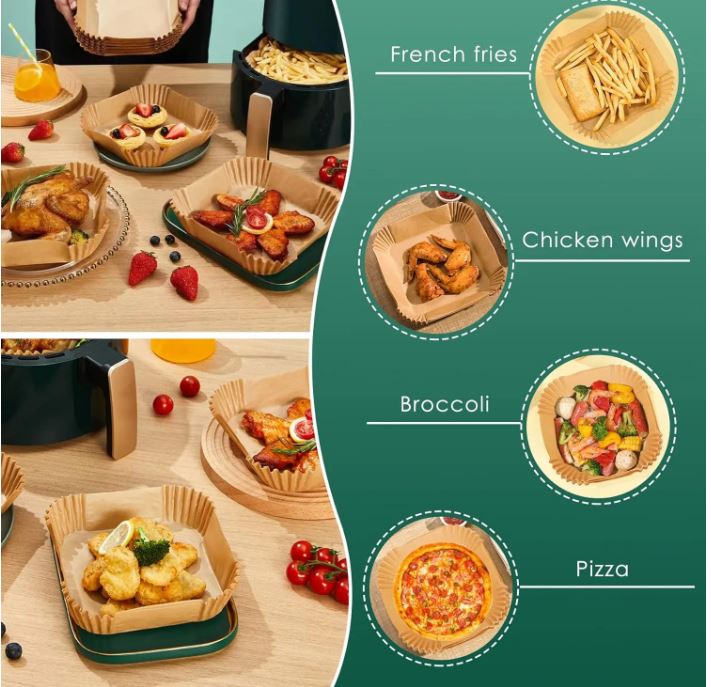 Heat Resistant: These air fryer papers are heat proof up to 428 ℉ or 230 degree celsius, easy to use and will not curl or burn.