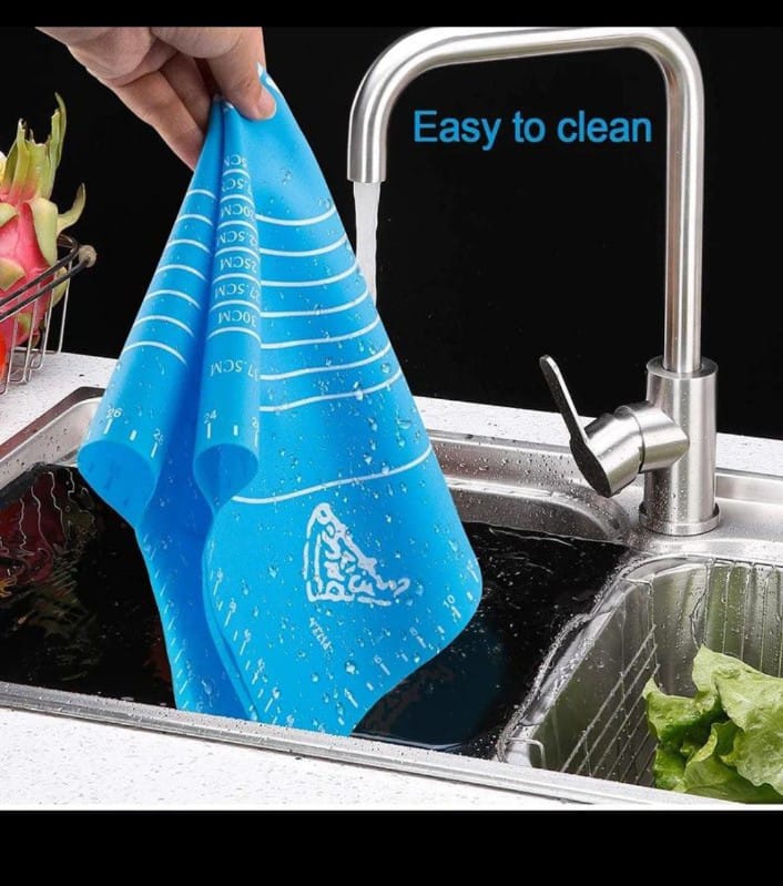 - Simply wash silicone rolling and baking dough mat under warm soapy water and wipe clean with soft cloth. The surface will not leave residues.